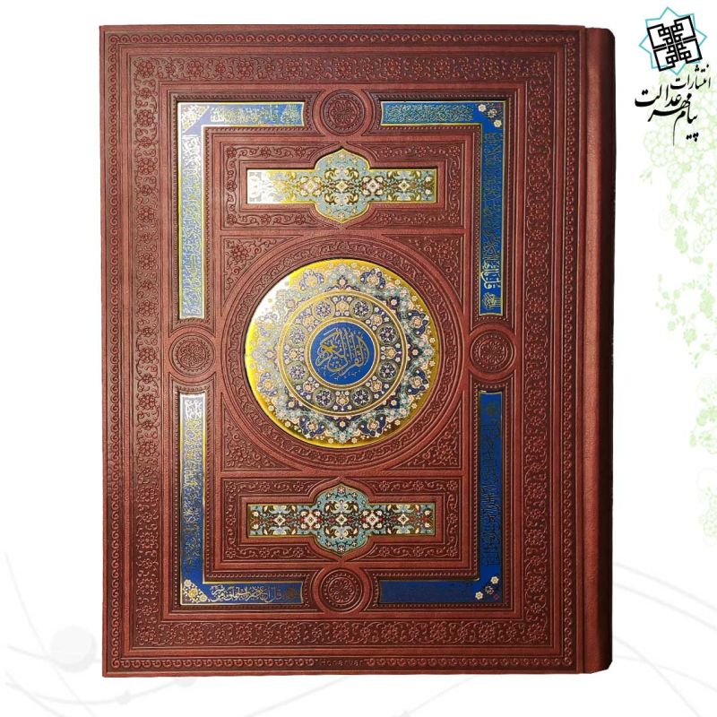 قرآن رحلی بدون ترجمه گلاسه ترمو قهوه ای جعبه دار پلاک دار