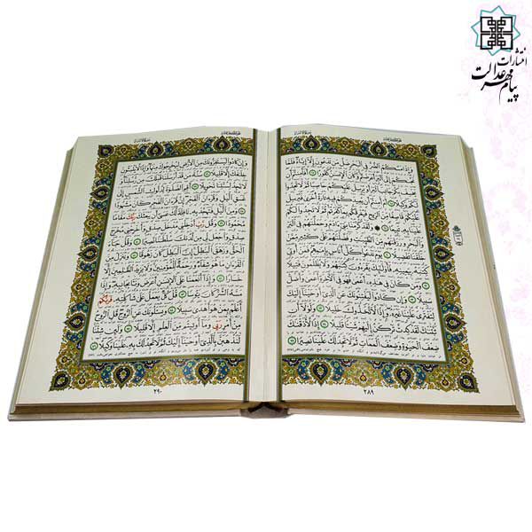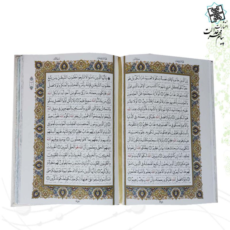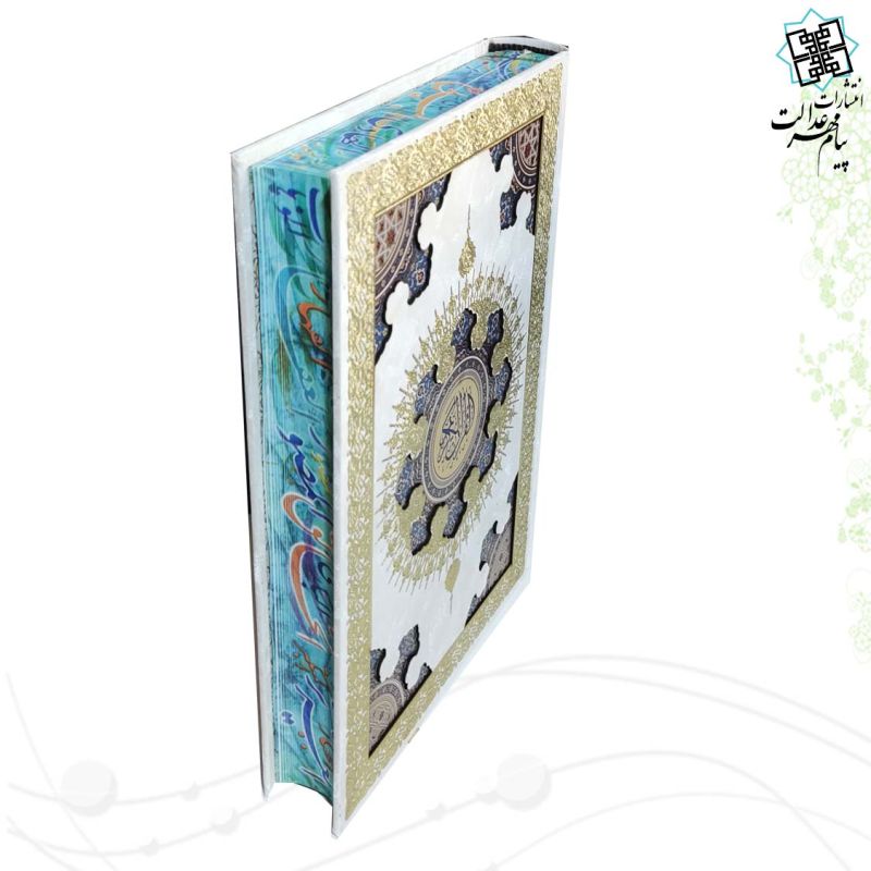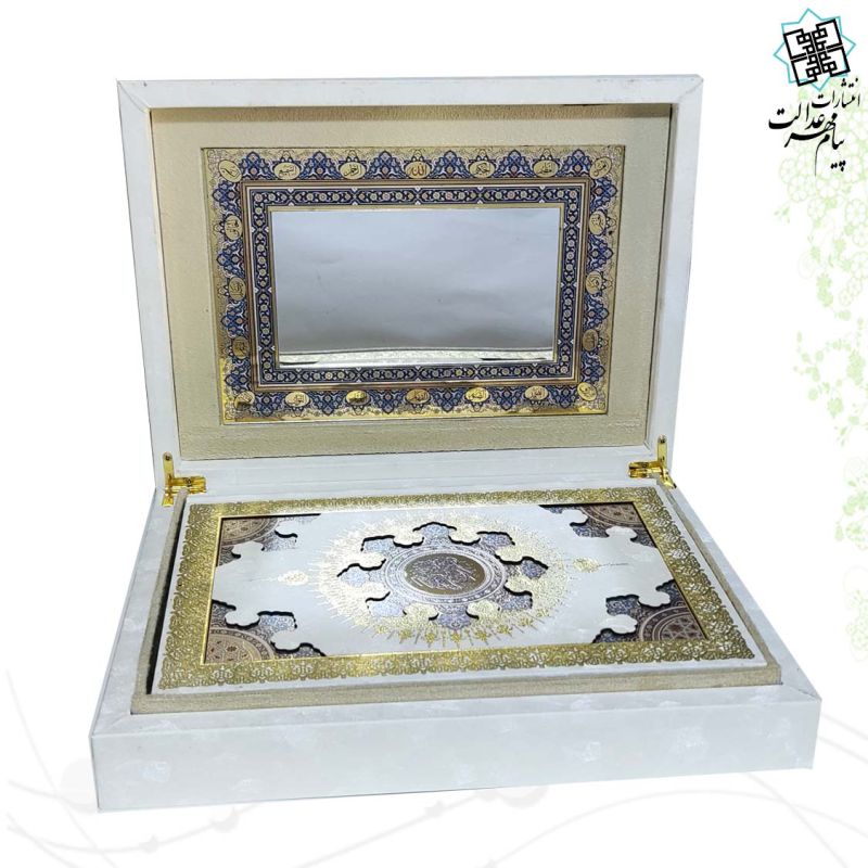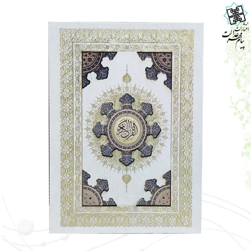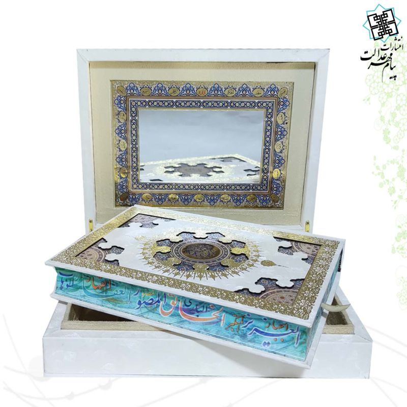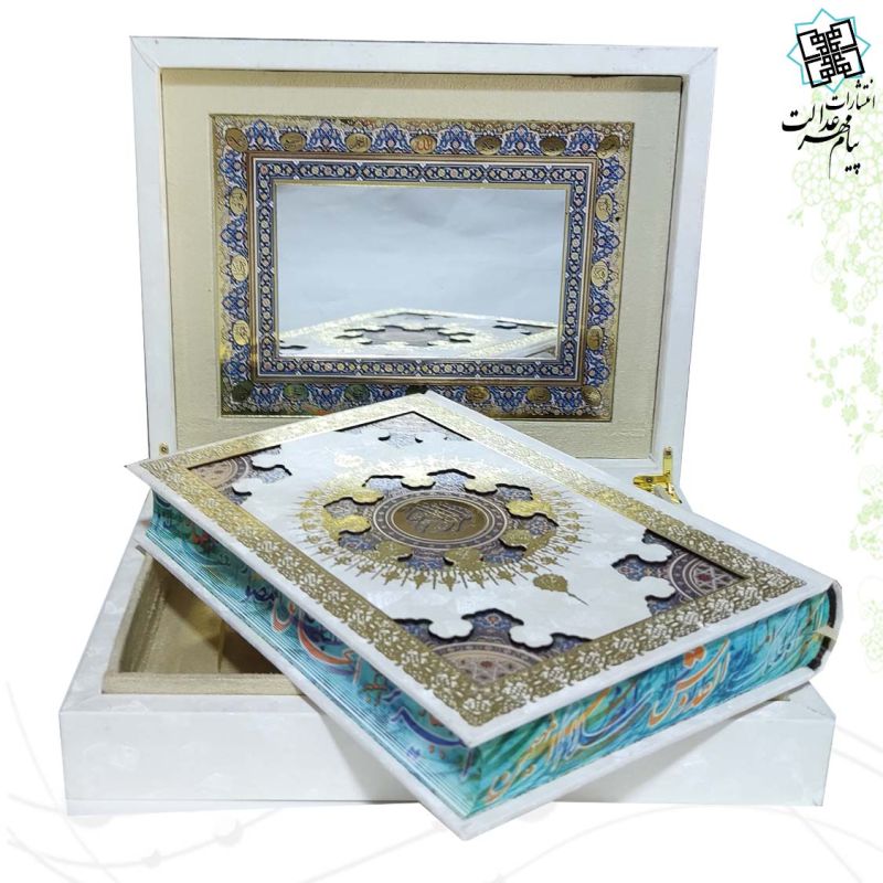 قرآن وزیری جعبه دار سفید با آینه پلاک رنگی لبچاپ