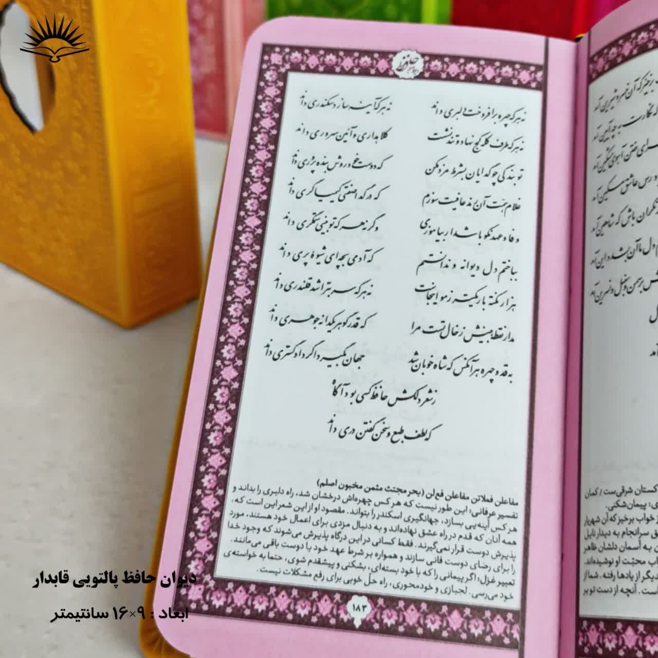 - ابعاد مناسب و قاب مقاوم باعث میشود این دیوان برای همراه داشتن در سفر، مطالعه روزانه و استفاده شخصی بسیار مناسب باشد.