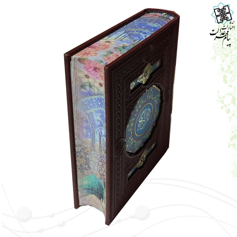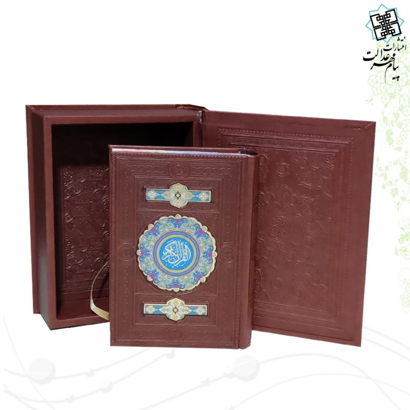 قرآن جیبی جعبه دار نفیس چرم قهوه ای پلاک رنگی