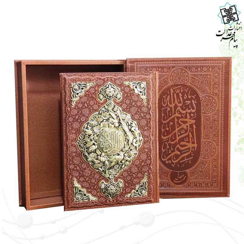 قرآن رحلی گلاسه چرم نفیس جعبه دار با طرح مس