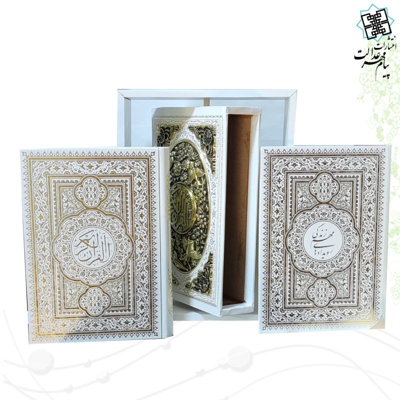 قرآن وزیری گلاسه سفید طرح مس مدل چرخشی